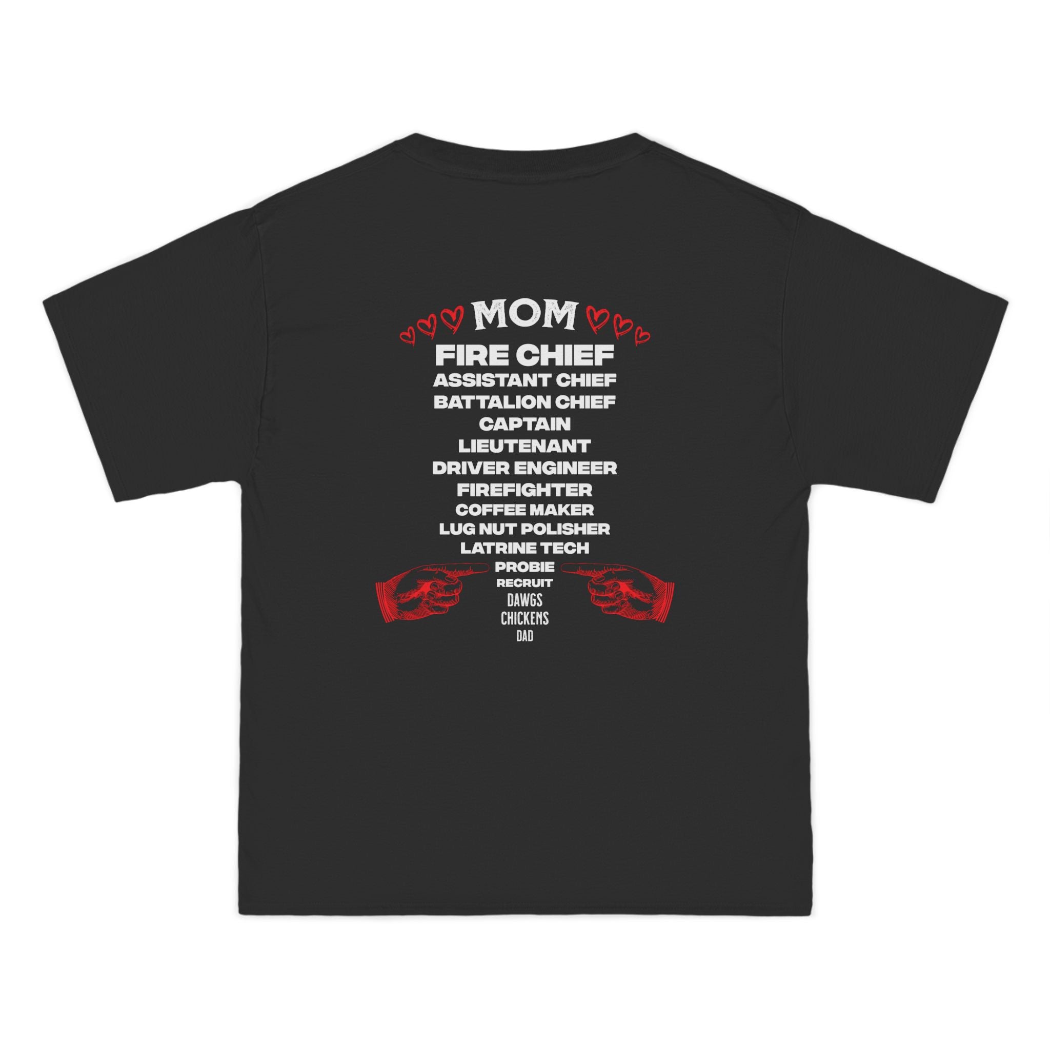 This relaxed-fit Beefy-T brings pride and grit to anyone connected to the fire service. The front wears a bold firefighter Maltese cross in red and white — a familiar badge of honor. On the back, stacked titles (from Fire Chief down to Probie roles) form a powerful tribute that reads like a roll call of skills and sacrifices. The medium-weight cotton jersey feels substantial without being stiff, and the lay-flat collar, taped shoulders, and double-needle hems keep the tee looking sharp after many washes. Wear it to training days, station visits, family cookouts, or fundraisers to quietly show where your loyalties lie and who you represent.